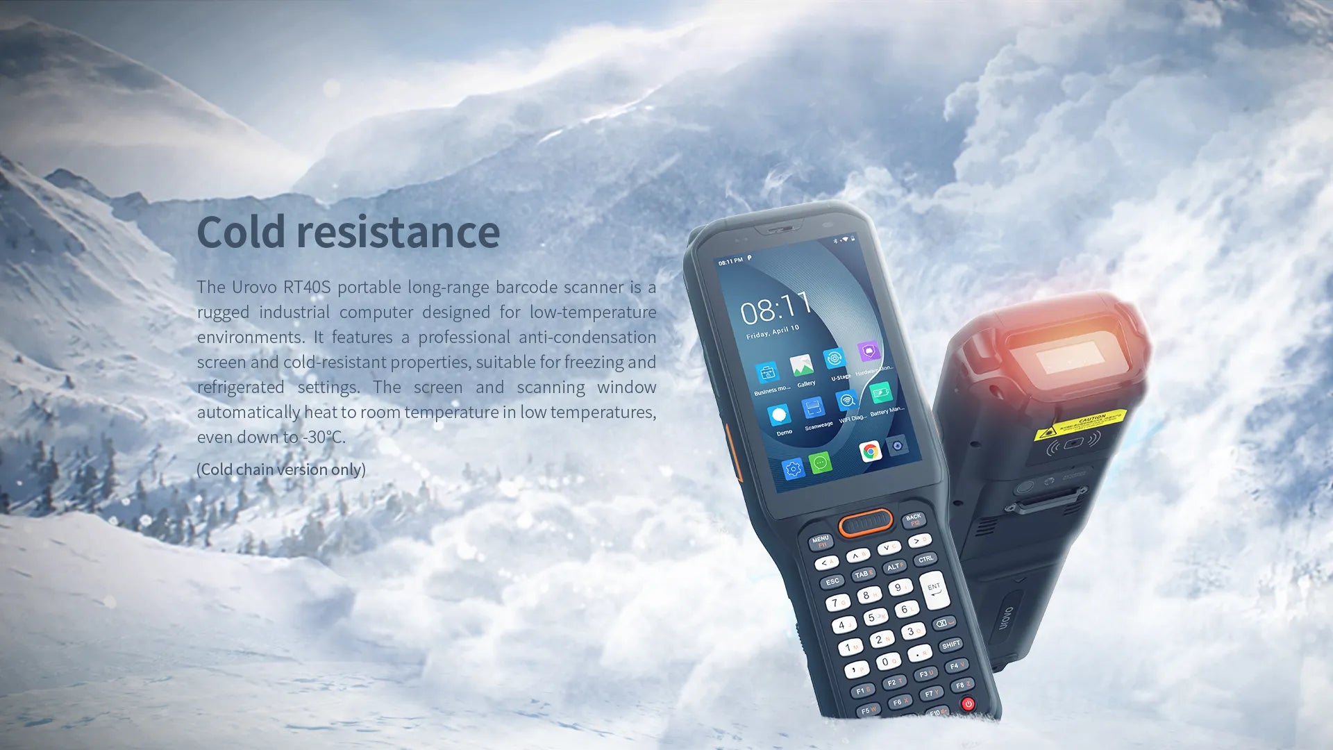 Urovo RT40S - Terminal Industriel Extrême pour Chaîne du Froid Le terminal robuste ultime pour environnements extrêmes. Scan longue portée 15 mètres, résistance -30°C, IP68 et...